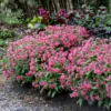 - Covered in pink blooms spring and summer.