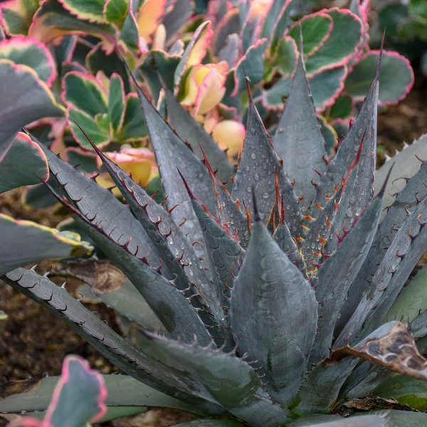 - Rainbow spines cover the margins of the blue-green foliage.
